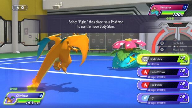 Here’s the situation: Cordy lends you a Charizard as you go against a Venusaur for your first-ever battle.